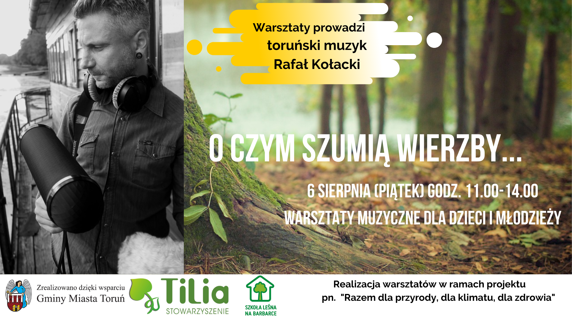 Stowarzyszenie „Tilia” oraz Szkoła Leśna na Barbarce zapraszają dzieci i młodzież od 10 lat w dniu 27 sierpnia od 11.00 do 14.00 na warsztaty muzyczne „O czym szumią wierzby…”.