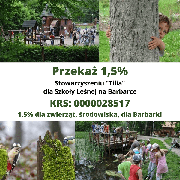 Każdy podatnik może wesprzeć działalność prowadzonej przez nas Szkoły Leśnej na Barbarce, dokonując wpłaty na nasze konto. Im więcej osób zostanie przekonanych do wpłacenia, tym skuteczniej możemy działać na rzecz ochrony środowiska i promować Osadę Leśną Barbarka jako miejsce spotkań rodzinnych, rekreacji i aktywnego wypoczynku w otoczeniu lasu.