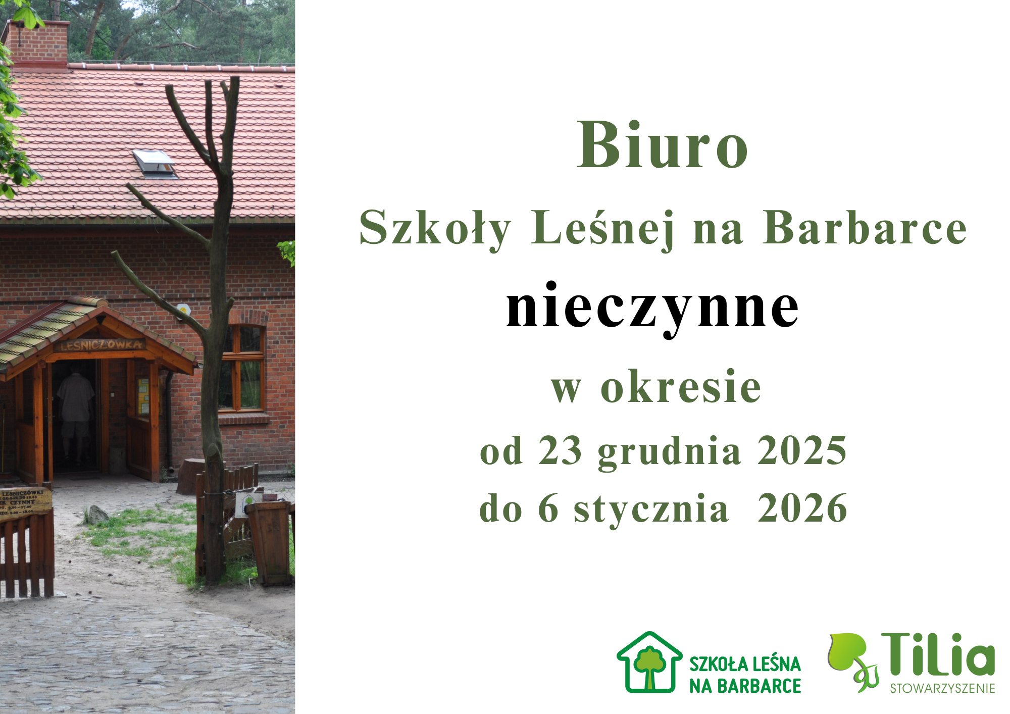 Biuro Szkoły Leśnej na Barbarce nieczynne w okresie świątecznym