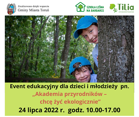 Stowarzyszenie „Tilia” i Szkoła Leśna na Barbarce zapraszają dzieci i młodzież z opiekunami do udziału w otwartym evencie edukacyjnym dla dzieci i młodzieży pn. „Akademia przyrodników – chcę żyć ekologicznie”.